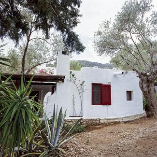 A distinctiveness of this cottage is the shimmering of the morning light on the sunny yellow tiles in the shower. The architect of Limnionas Village, Werner Wieland, received an award for the exterior view of the bathroom window in the late 1970s.